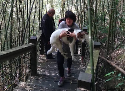 魯去金針山上差點被獒犬圓圓咬屁屁,全家都努力保護牠,結果爸爸跌一跤還摔破了眼鏡